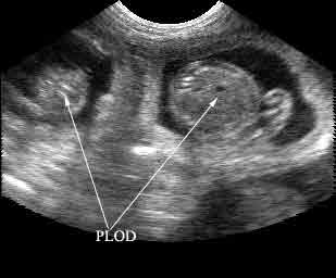 Ultrazvočni posnetek brejosti v starosti približno 6 tednov:
