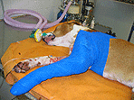 Nogo smo na koncu še povili in na ta način zagotovili še dodatno imobilizacijo in zmanjšali možnost okužbe. Lastniki so psu nogo sami previjali (imajo medicinsko znanje) in rano spirali, poleg tega pa smo mu predpisali antibiotike za 4 tedne. | |