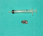 Med operacijo nam je uspelo odstraniti večji del krogle, medtem ko je nekaj manjših drobcev ostalo skritih med mišičnimi vlakni. | |