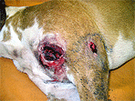 Fotografije prikazujejo potek zdravljenja strelne rane pri psu. Gre za 2 leti starega psa, ki ga je lovec pri lovu po nesreči ustrelil namesto divjega prašiča. Psa so pripeljali približno 4 ure po nesreči. Ker je bil pes v šoku,ker je imel hude bolečine, obsežne rane in velikeoizgubo krvi smo ga najprej stabilizirali, nato rentgenizirali in se odločili za operativno naravnavo zlomljene nadlahtnice. Ker so strelne rane vedno inficirane, smo se odločili za zdravljenje z t.i. eksternim fiksatorjem.